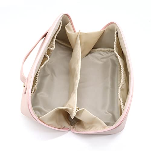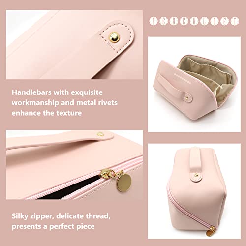 Peachloft Cosmetic Bag, Large Capacity Travel Cosmetic Bag, Cosmetic Bag, Makeup Bags for Women, Waterproof Pu Leather Makeup Organizer Bag with Dividers and Handle (Pink)