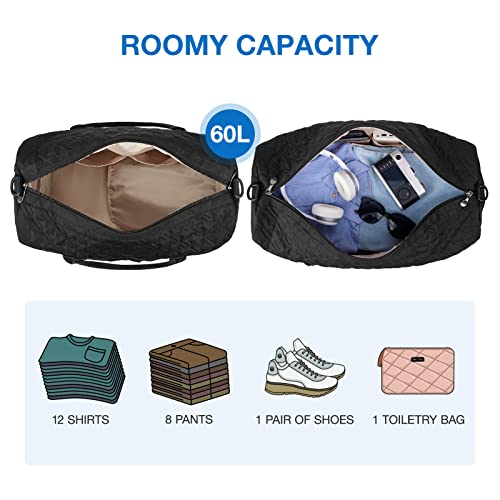 Travel Bag, BAGSMART 50L Large Duffle Bag for Men Women Carry On Weekender Overnight Bag with Shoes Compartment, Black