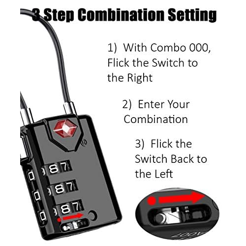 Patented Easy Set Combination – Most TSA compatible locks on the market have a complicated combination setting procedure which makes entering the wrong combination a real risk. Setting the combination on our cable TSA locks is done with the simple flick of a switch and literally takes 20 seconds to complete. Simply use your fingernail or a pen to flick the switch, enter your combination, flick the switch back and you’re done. It’s as easy as that.