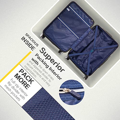 Coolife Luggage Expandable(only 28″) Suitcase PC+ABS Spinner 20in 24in 28in Carry on (white grid new, S(20in)_carry on)