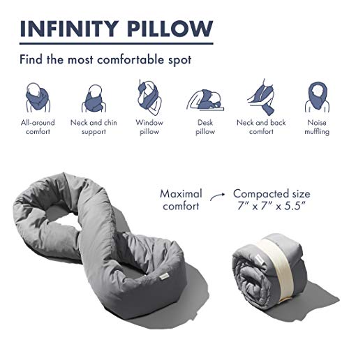 INFINITY PILLOW – The patented travel pillow designed for all resting positions, with full adjustability, 360° support and incredible breathability.